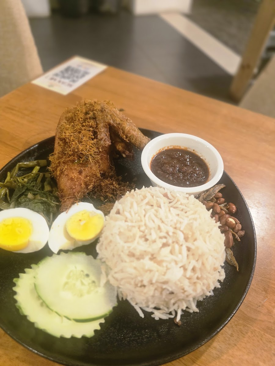 Food was ok, overall 6.5/10... Nasi lemak was ok 6/10, sambal more on sweeter side and sotong sambal was more on salty site, mixed together sambals was good... Masak lemak was 7/10, it's lighter than most shop, and thr smoked meat was good... The tarik was good, 9/10... Restaurant was clean and quite, and many pretty ambience